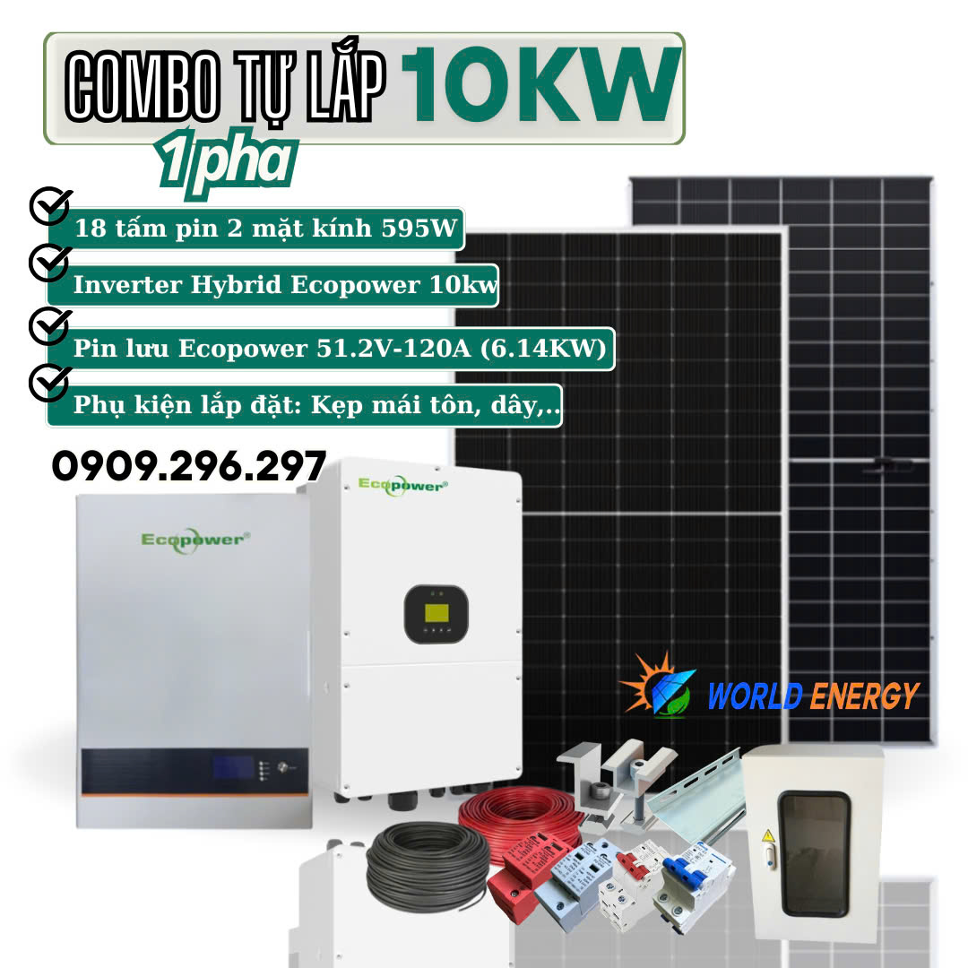 - Bộ biến tần lưu trữ (Hybrid) Ecopower 12KW: 1 bộ