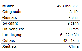 Máy bơm hỏa tiễn 4 inch cánh nhựa VERATTI 4VR16/9-2.2 3HP