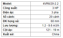 Máy bơm hỏa tiễn 4 inch cánh nhựa VERATTI 4VR16/9-2.2 3HP