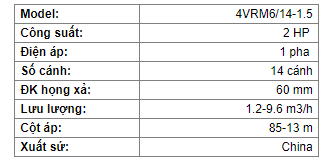 Máy bơm hỏa tiễn 4 inch cánh nhựa VERATTI 4VR6/14-1.5 2HP