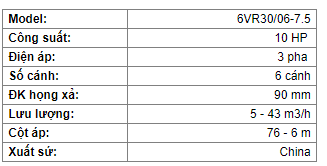 Máy bơm hỏa tiễn 6inch VERATTI 6VR30/06-7.5 thuộc dòng máy bơm nước thả chìm là loại :