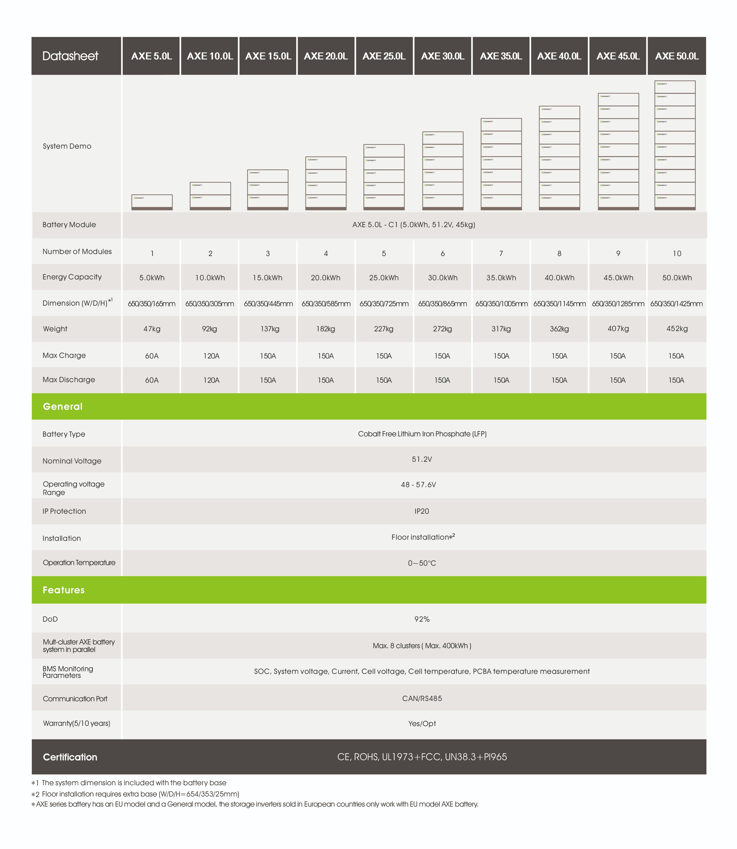 Thông số kỹ thuật Pin lưu trữ Lithium Growatt 48V – 10KWh